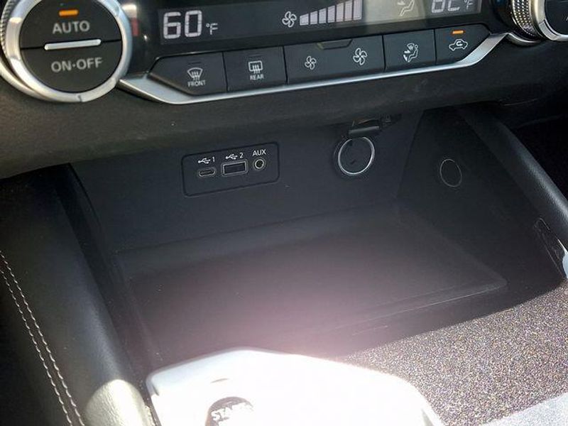 Stepping inside, you'll be greeted by a premium Bose sound system, providing an immersive audio experience. The NissanConnect infotainment system seamlessly integrates with your smartphone, allowing you to access your favorite apps, navigation, and more with ease. The heated steering wheel and leather-appointed seats add a touch of luxury, ensuring your every journey is both comfortable and stylish.