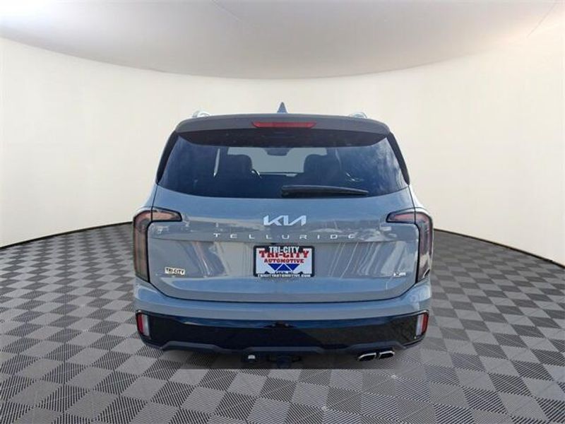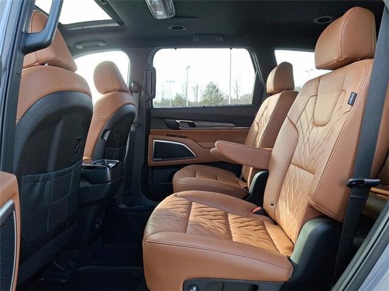 Telluride EX X-Line, 3.8L V6 DOHC, 8-Speed Automatic, AWD, Wolf Gray, Black Leather, 3rd row seats: split-bench, 4-Wheel Disc Brakes, 6 Speakers, ABS brakes, Air Conditioning, Alloy wheels, AM/FM radio: SiriusXM, Apple CarPlay & Android Auto, Auto High-beam Headlights, Auto-dimming Rear-View mirror, Auto-leveling suspension, Automatic temperature control, Bumpers: body-color, Cargo Tray Seat Back, Carpet Floor Mats, Driver vanity mirror, Dual front side impact airbags, Electronic Stability Control, Emergency communication system: 911 Connect, Exterior Parking Camera Rear, Four wheel independent suspension, Front Bucket Seats, Front dual zone A/C, Fully automatic headlights, Heated & Ventilated Front Bucket Seats, Heated door mirrors, Heated front seats, Heated steering wheel, Illuminated entry, Knee airbag, Leather Seat Trim, Leather Shift Knob, Leather steering wheel, Navigation System, Outside temperature display, Overhead airbag, Overhead console, Panic alarm, Passenger door bin, Power door mirrors, Power driver seat, Power Liftgate, Power moonroof, Power passenger seat, Power steering, Power windows, Radio: AM/FM Display Audio System, Rear reading lights, Rear side impact airbag, Rear window defroster, Reclining 3rd row seat, Roof rack: rails only, Security system, Side Step Bars, Smart Key w/ Push Button and Remote Start, Speed control, Telescoping steering wheel, Terracotta Interior Color Package, Tilt steering wheel, Traction control, Turn signal indicator mirrors, Variably intermittent wipers, Ventilated front seats, Wheels: 20'' x 7.5'' Black Finish X-LINE Exclusive.